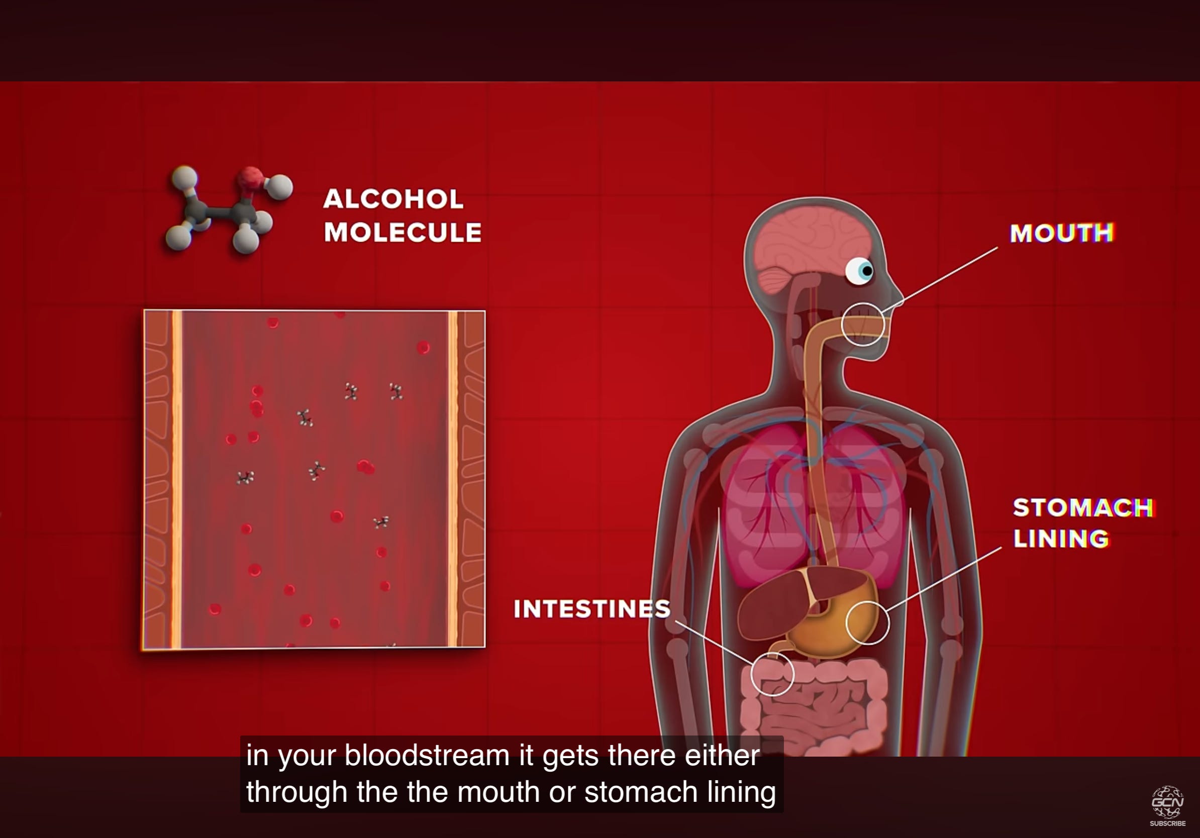 Within about a minute of the first sip, alcohol (ethanol) enters our bloodstream via the mouth, stomach, and intestines.